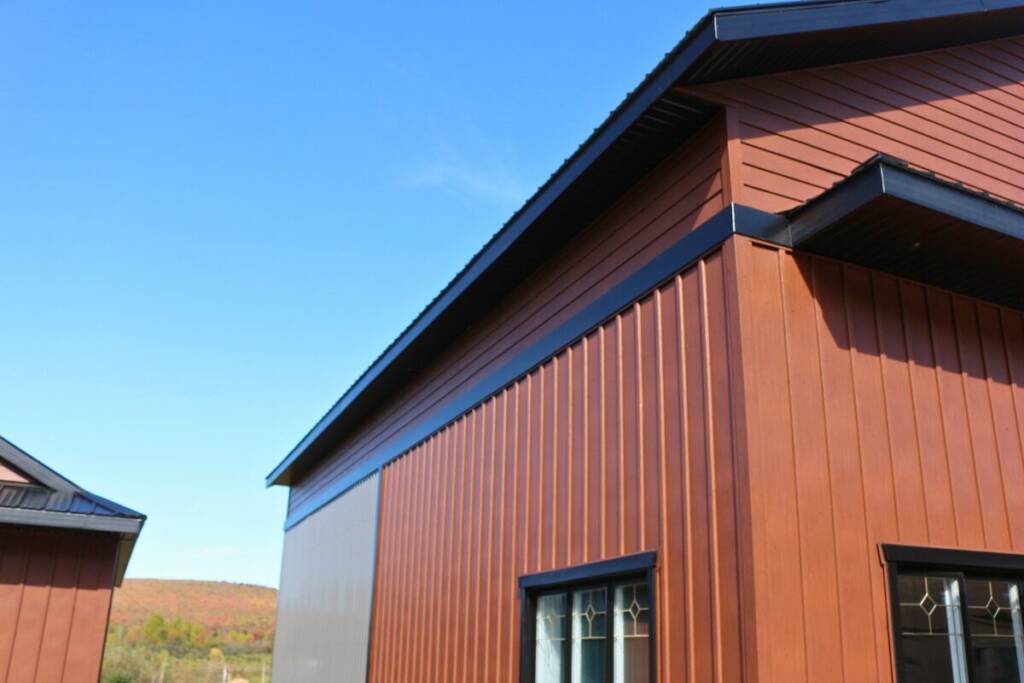 Par exemple, lorsqu’un bâtiment est recouvert de contreplaqué, le revêtement métallique agit surtout comme un revêtement de finition. Dans ce cas, il n’a pas besoin d’assumer un rôle structural important, puisque la rigidité provient déjà de la structure en dessous.